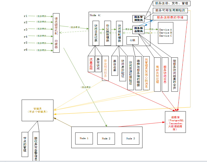 API请求服务路由 | 服务路由模块 | 对业务请求进行路由,后台服务接收到服务请求后将执行结果交给服务网关,服务网关将结果转发给请求客户端 |