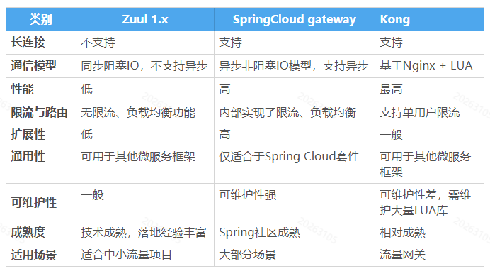 1、主流网关的对比与选型: