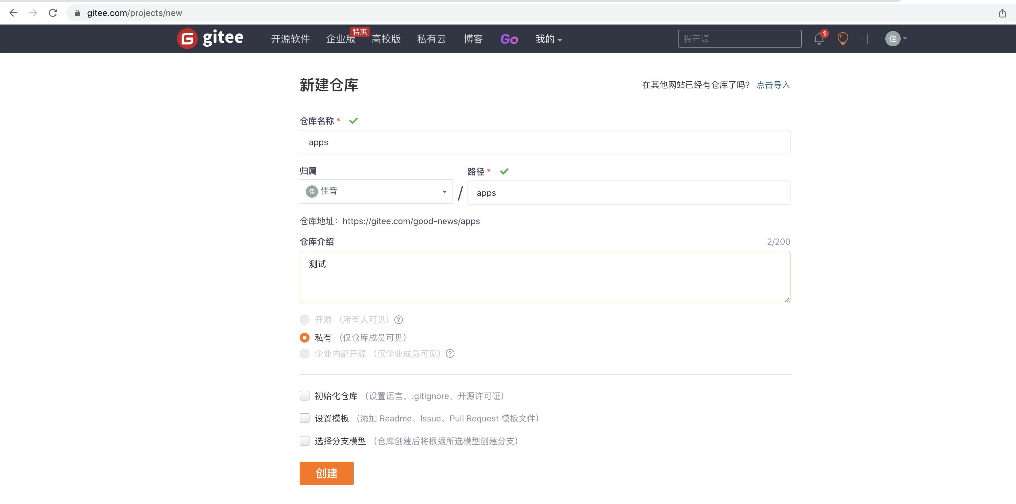 选择gitee来测试