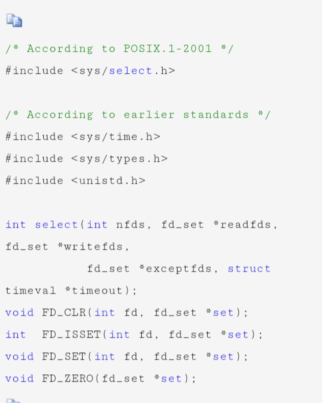 综上可知,select以朴素的方式实现了IO复用,将并发量提高的最大K级,但是对于完成这个任务的代价和灵活性都有待提高。无论怎么样select作为先驱对IO复用有巨大的推动,并且指明了后续的优化方向,不要无知地指责select。