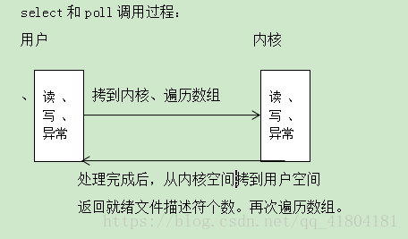 | 1、用途:在一段时间内,监听用户感兴趣的的文件描述符上的可读、可写和异常事件。(轮询) | 1、同select,也是在指定时间内,轮询一定数量的文件描述符。以测试其中是否就绪者。(轮询:因为是数组所以需要一个一个的遍历) |
