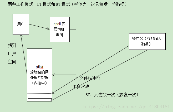 ET模式与LT模式:select都只能工作于LT模式,而epoll可工作于LT模式和ET模式