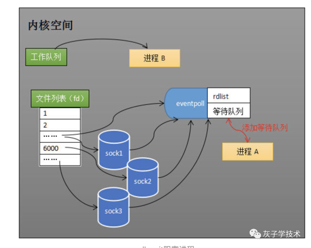 在epoll_wait的时候,阻塞等待事件发生, 事件发生时通过回调挂到ready list链表中