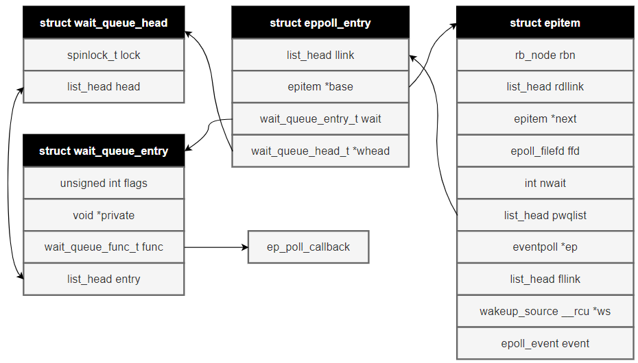 eppoll_entry和epitem等结构关系如下图: