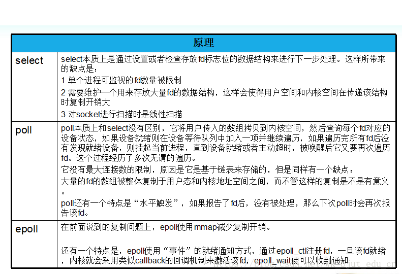 附上C++教程网的select/poll/epoll对比
