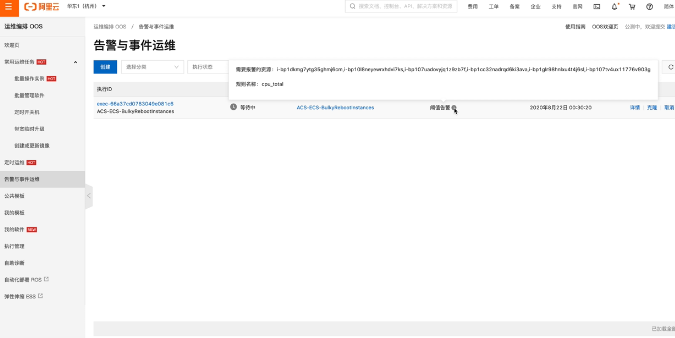 定时运维模块可以在固定的时间和固定的地域执行指定的任务。告警与事件运维模块中若控制台上显示当某个事件发生时自动触发模版,比如 CPU 使用率过高时重启实例操作。