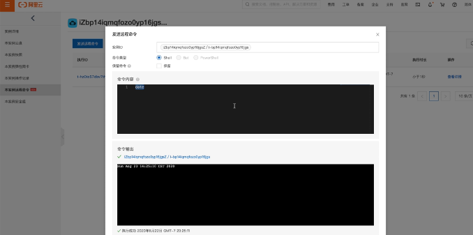 此外还有更加快速的执行实例命令方式,在实例列表模块中选择具体的实例,进入实例详情页后会显示本实例远程命令,显示了历史的执行命令,同时可以发送新的远程命令。其次在实例列表中同时选择多台实例,选择更多,发送远程命令,这时多台实例就可以同时执行命令。