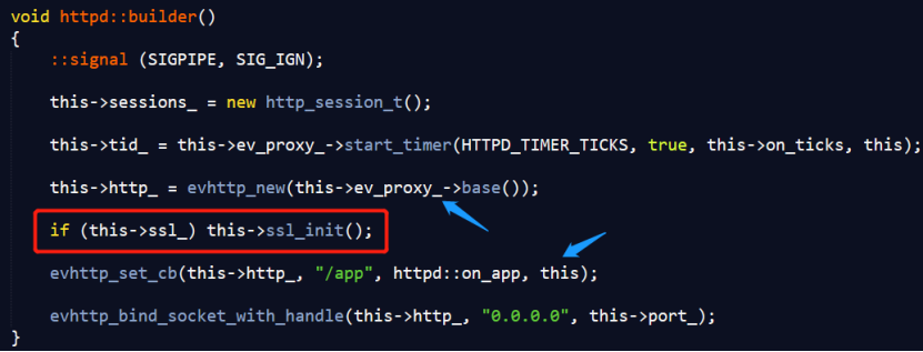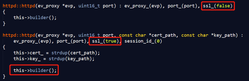 构造函数中会初始化ssl_,true表示https,false表示http,然后在builder中启动服务器,builder根据ssl_确定是否要初始ssl: