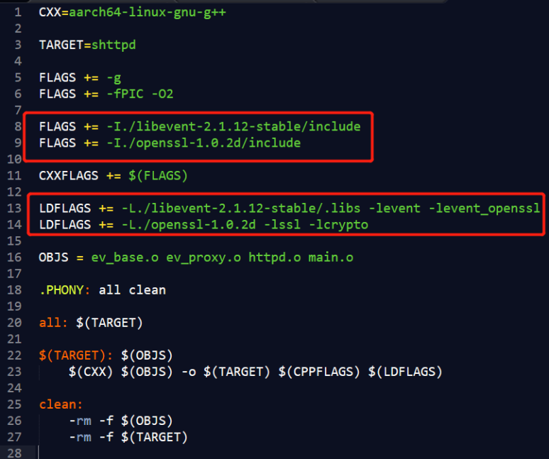 Makefile 需要链接libevent和openssl: