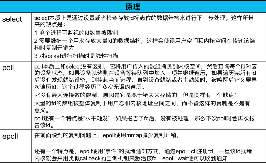 - https://github.com/debitCrossBlockchain/interview__reference/blob/master/01.%E9%98%BF%E9%87%8C%E7%AF%87/1.1.5%20%E5%85%B3%E4%BA%8Eepoll%E5%92%8Cselect%E7%9A%84%E5%8C%BA%E5%88%AB%EF%BC%8C%E4%BB%A5%E4%B8%8B%E5%93%AA%E4%BA%9B%E8%AF%B4%E6%B3%95%E6%98%AF%E6%AD%A3%E7%A1%AE%E7%9A%84.md