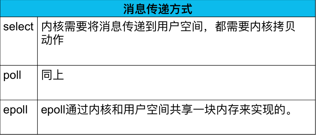 - 不管是哪种I/O机制,都无法避免fd在操作过程中拷贝的问题,而 epoll 使用了 mmap (是指文件/对象的内存映射,被映射到多个内存页上),所以同一块内存(共享内存)就可以避免这个问题(详细看前面的零拷贝技术及 mmap)。