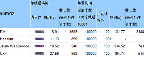HttpInvoker是SpringFramework提供的JAVA远程调用方法,使用java的序列化机制处理对象的传输。从测试结果看,其效率还是可以的,与RMI基本持平。
