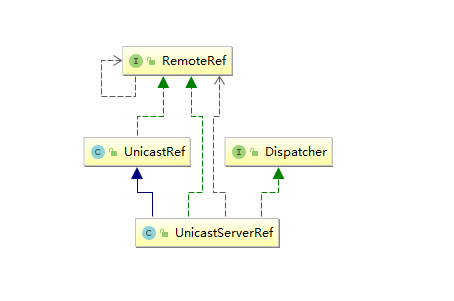 远程对象必须实现UnicastRemoteObject,这样才能保证客户端访问获得远程对象时,该远程对象会把自身的一个拷贝以Socket形式传输给客户端,客户端获得的拷贝称为“stub”,而服务器端本身已经存在的远程对象称为“skeleton”,此时客户端的stub是客户端的一个代理,用于与服务器端进行通信,而skeleton是服务器端的一个代理,用于接收客户端的请求之后调用远程方法来相应客户端的请求