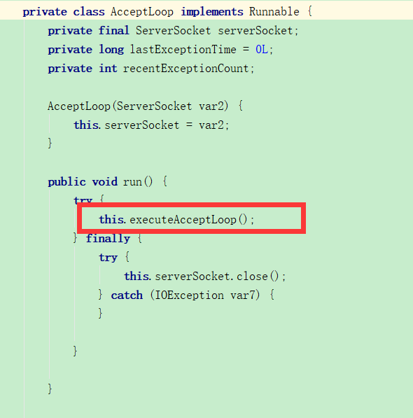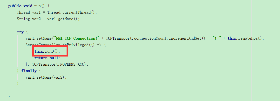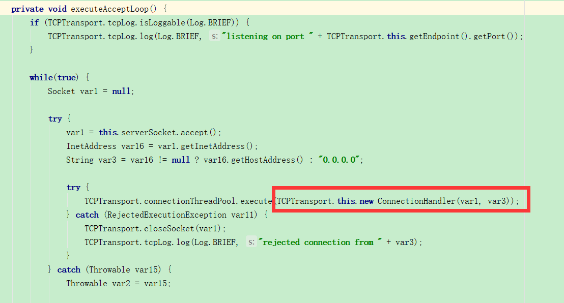 Thread var3 = (Thread)AccessController.doPrivileged(new NewThreadAction(new TCPTransport.AcceptLoop(this.server), "TCP Accept-" + var2, true));