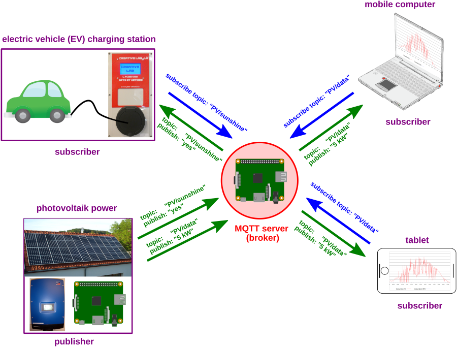 "PV/data"另一方面,以 kW 为单位传输工厂产生的瞬时功率,并且该主题可以例如通过计算机或平板电脑订阅,以生成一天内传输功率的图表。