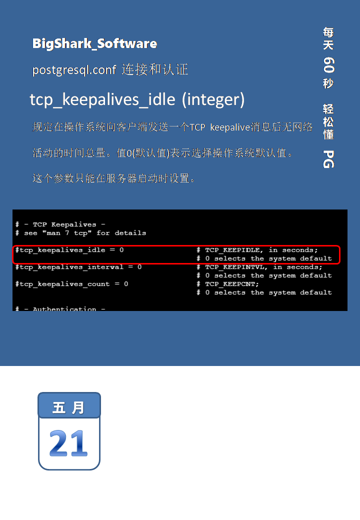 以上就是聪明保温杯最近收集整理的关于postgresql.conf tcp_keepalives_idle的全部内容,更多相关postgresql.conf内容请搜索靠谱客的其他文章。