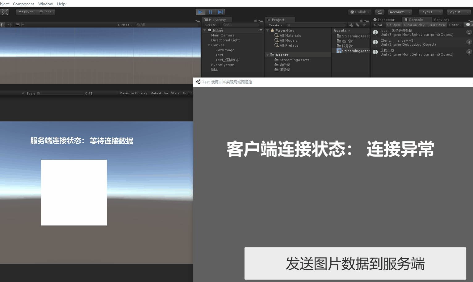 客户端向服务端发送一张图片,服务端接收该图片后,显示5秒,并保存在Assets文件夹下;