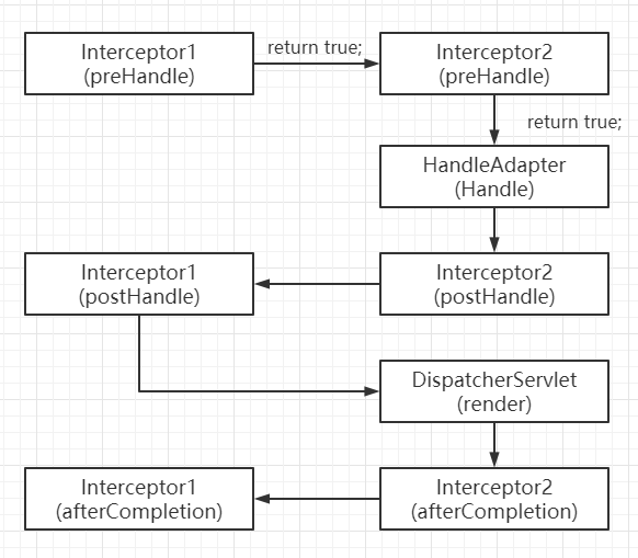 afterCompletion()方法:该方法会在整个请求完成,即视图渲染结束之后执行。可以通过此方法实现一些资源清理、记录日志信息等工作。