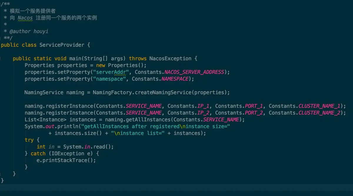 我们模拟将同一个服务的两个实例注册到 Nacos 中,代码如下图所示: