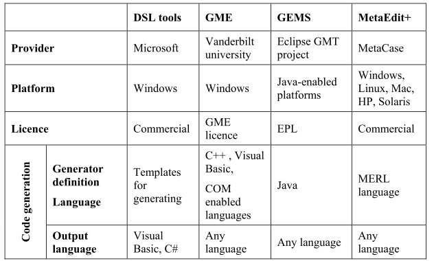 在特定领域建模 DSM(Domain Specific)介绍中介绍了DSM的不同工具的比较,其中代码生成定义语言也可以从表中看到,下面将会介绍一下DSL tools的T4和MetaEdit+的MERL(MetaEdit+ Reporting Language):
