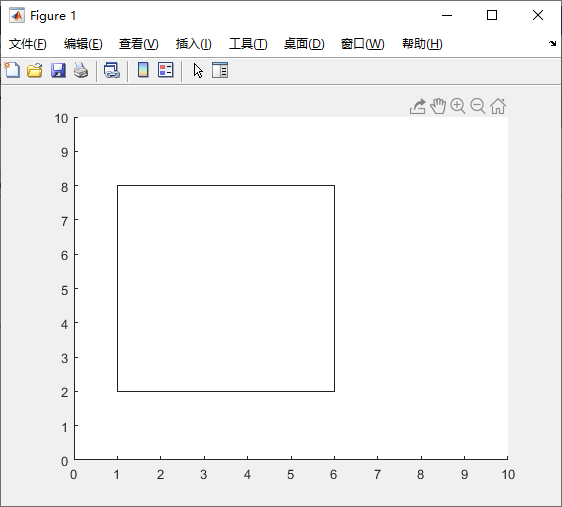 绘制一个左下角位于点 (1,2) 位置处的矩形。将矩形的宽度设置为 5 个单位,将高度设置为 6 个单位。然后,更改坐标轴范围。如下所示: