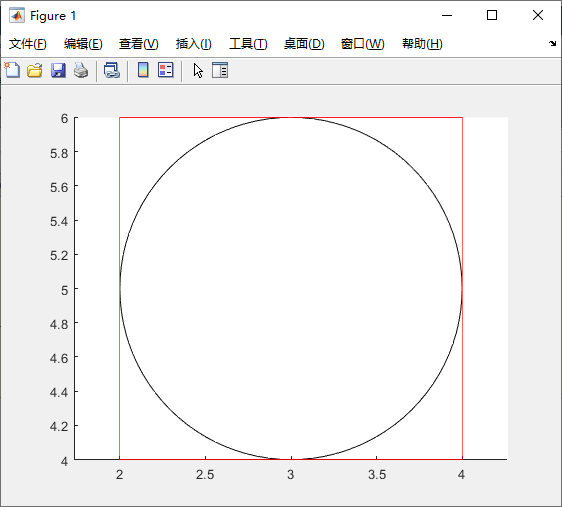 通过将 Curvature 属性设置为 [1 1] 绘制一个圆。绘制一个圆形,用它来填充点 (2,4) 与 (4,6) 之间的圆形区域。Position 属性定义包含该圆形的最小矩形。如下所示: