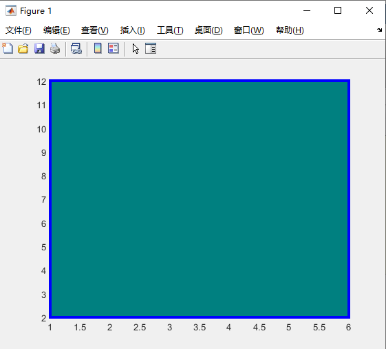 rectangle('Position',[1,2,5,10],'FaceColor',[0 .5 .5],'EdgeColor','b',...