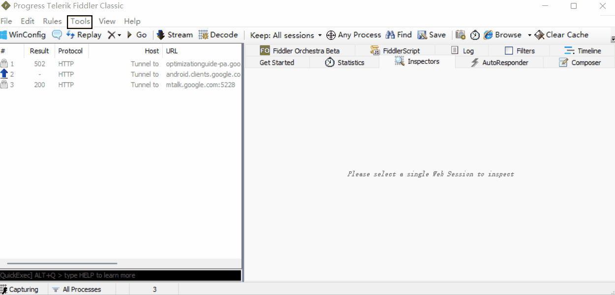 注意: 直接安装的 Fiddler 是无法抓取 HTTPS 的请求的,需要按照以下步骤配置以下才能够抓取