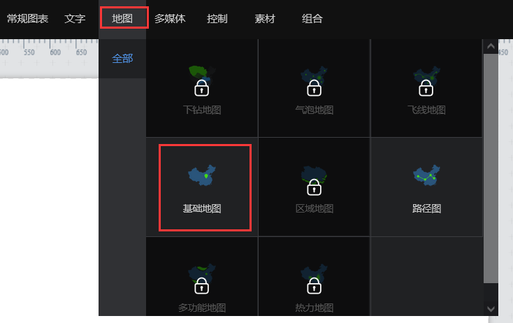 把基础地图拖入画布中并布局地图控件,点击地图控件-数据: