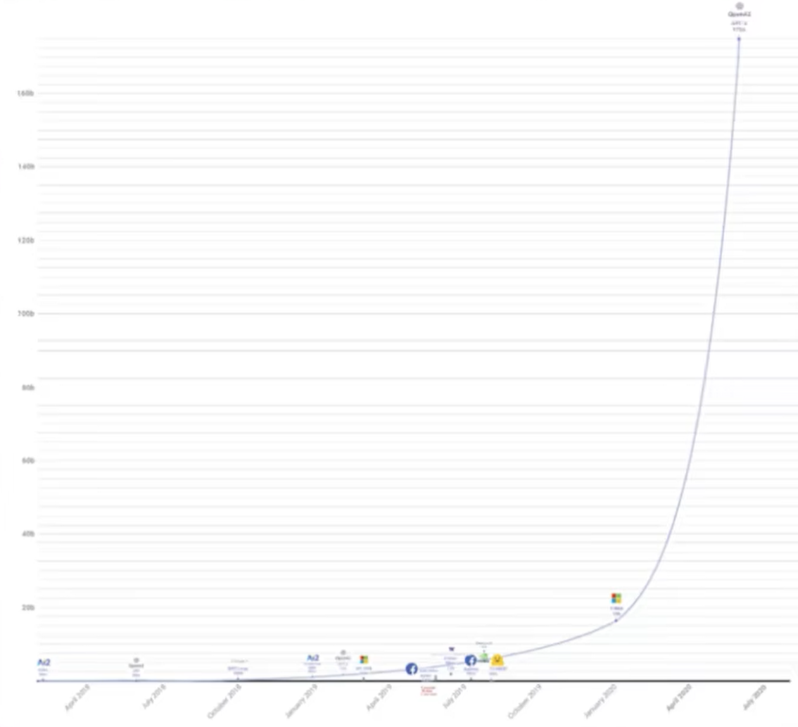 业内公司统计过从2012年到2018年期间,最大规模的AI训练使用的computing resources每三个月会翻倍一次,然后在这6年间已经增长了30万倍,那么OpenAI的这个转型过程中有一个非常重要的公司就是---微软。