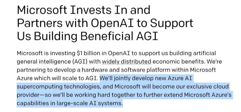 第一、OpenAI会把自己的产品全部放到微软的Cloud Platform Azure上面;