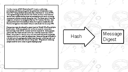 他写完后先用 Hash 函数(哈希算法),生成信件的摘要(digest)。