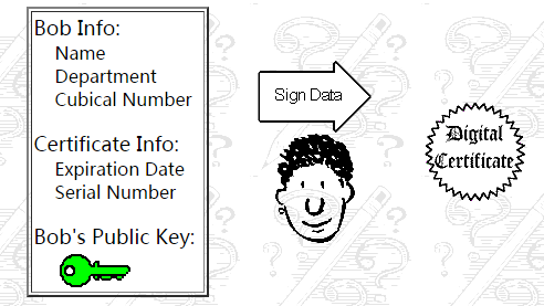 证书中心用自己的私钥,对鲍勃的公钥和一些相关信息一起加密,生成"数字证书"(Digital Certificate)。
