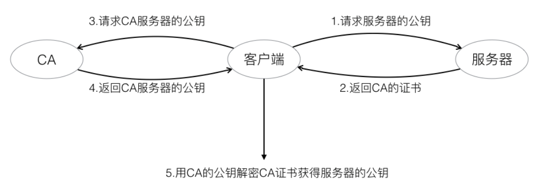 当服务器向客户端发送数据的时候,还附带上从 CA 下载到本地的证书,客户端拿到证书以后使用CA的公钥进行解密,确认服务器的公钥无误