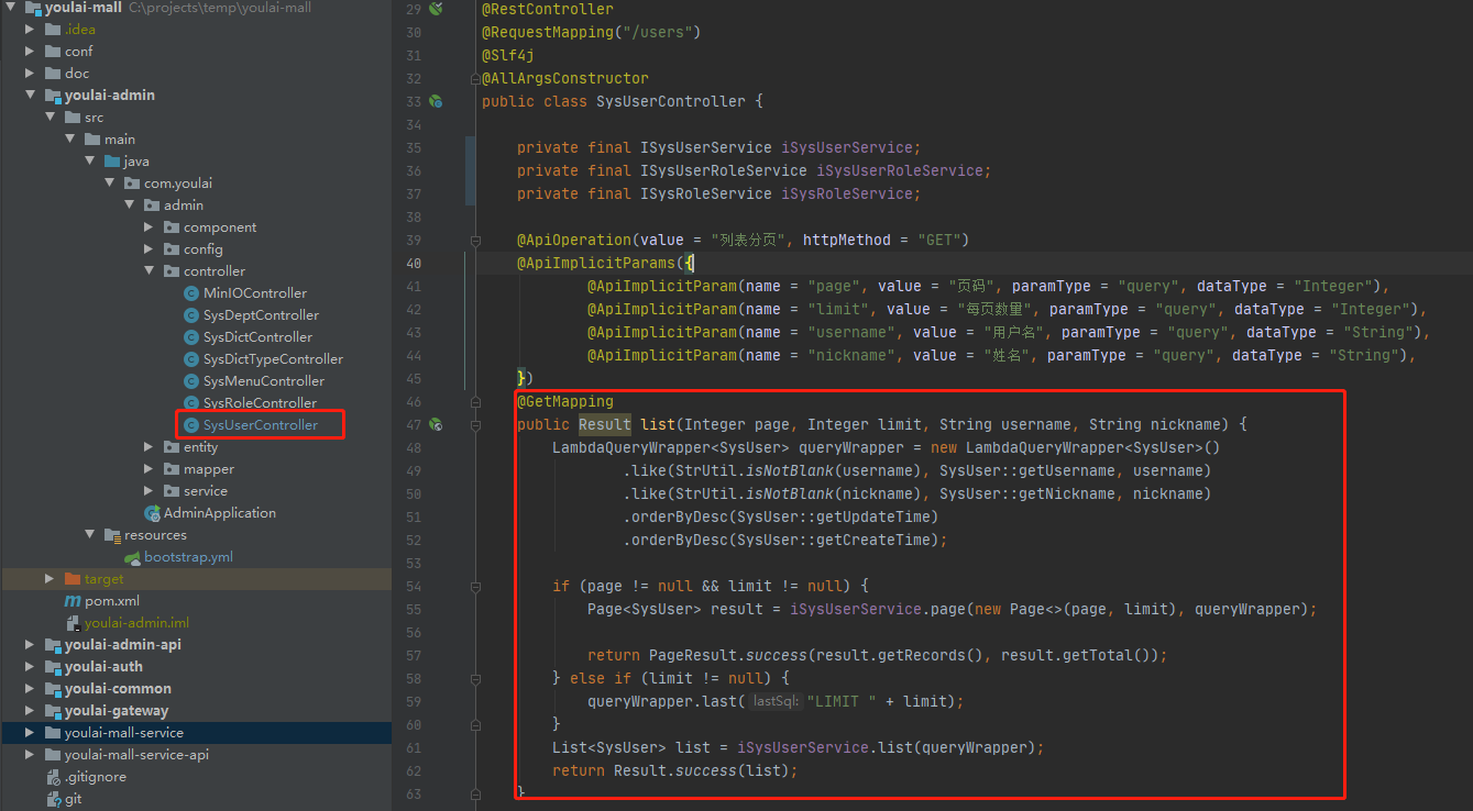 有来商城youlai-mall 完整项目结构图