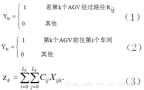 条件:式(5)指定每个AGV从启动站0开始,所有工作站只能通过AGV访问一次;式(6)表示任何路径都是从启动工作站开始,式(7)说明同样以起点为结束。