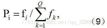 选择操作决定再结合或交叉父代个体和预定种群产生的后代个体数量。选择操作会直接影响遗传算法的结果。不合适的选择操作将造成进化终止或使算法丧失多样性,造成早熟问题。这里采用轮盘赌轮选择父代个体,个体i的概率等于其适应值与群体适应值和的比值,如下式所示。