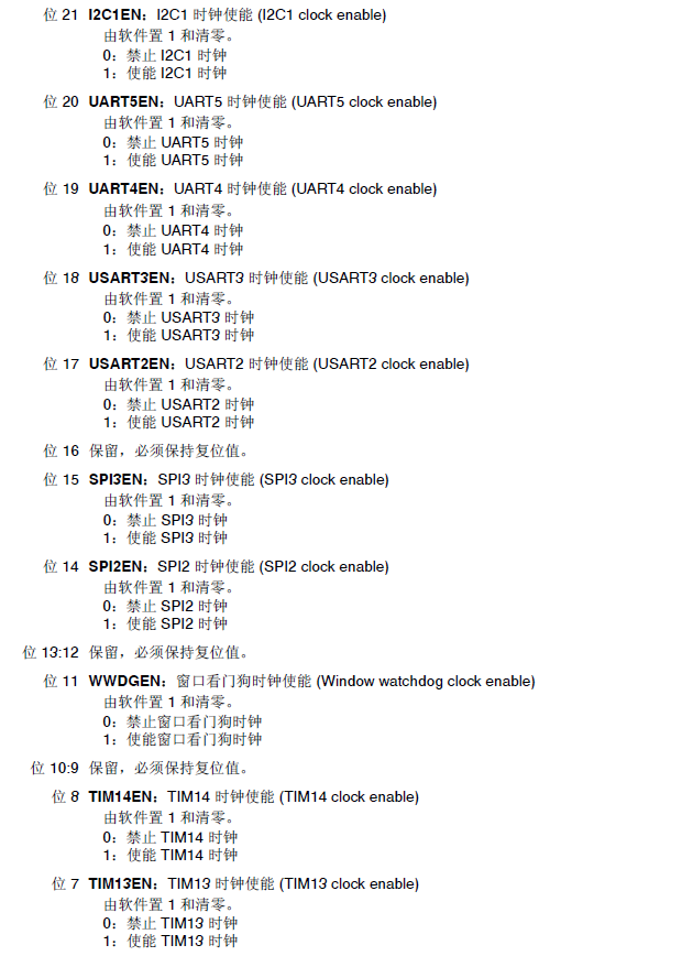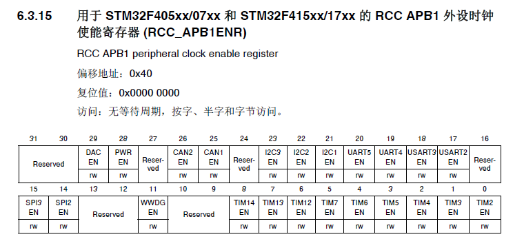 查看APB1ENR寄存器,我们可知: