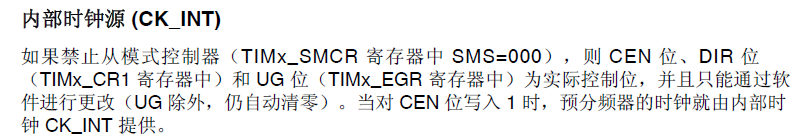 注:由上述的定时器框图,我们可以得知:CK_INT也就是来自RCC的TIMxCLK
