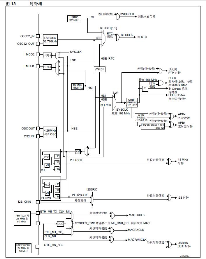 AHB不分频,APB1 4分频,APB2 2分频,且可得知:AHB的频率为168MHZ;