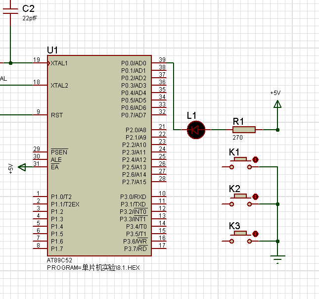 从电路图可以看出来,K3是控制ACC.7;K2是中断0,K1是中断1