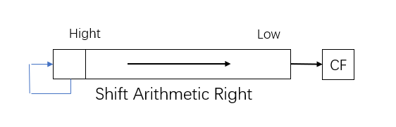 功能:右移一次,最高位保持不变,最低位送入CF标志位,如图: