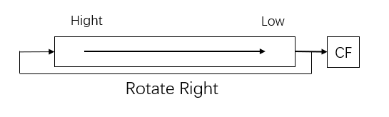 功能:右移一次,右移前的最低位送入最高位以及CF.如图: