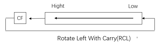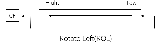 功能:左移一次,左移前的最高位送入CF,CF的内容送入最低位.如图: