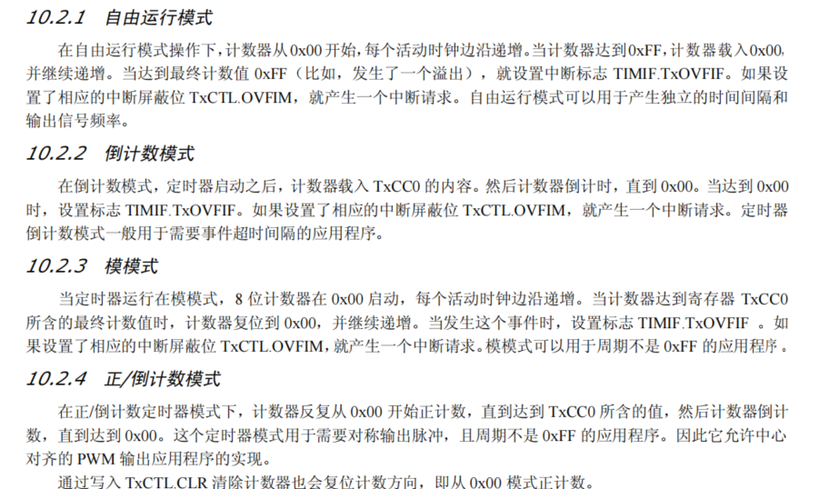 可通过定时器 T1 以及 定时器 T3同时来分别控制LED灯的闪烁,我们让定时器1处于8分频的自由模式下,T1 为16位的计数器,计数器每8/(30*1000000)的值加1,在自由模式下计数器计数到0xffff发生溢出中断的时间为0.16秒。而T3为8位的计数器,在自由模式下计数器计数到0xffff发生溢出中断的时间为0.000 064秒。