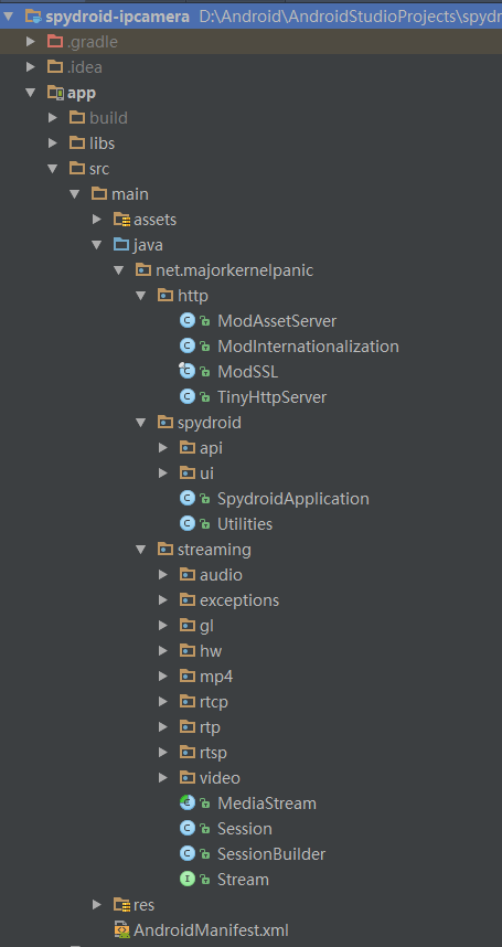 当我们在接触一个全新领域的时候,最希望的是能实实在在看到一个demo产品,通过demo产品我们更容易理解其内在的原理。在网上看到了许多的开源项目,最后选择了spydroid,感觉它跟Android结合更紧密。更多的信息可以参考Android视频采集方案总结。