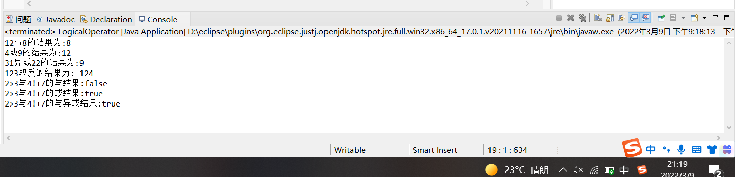 例2.13 使用逻辑运算符和关系运算符对变量进行计算。