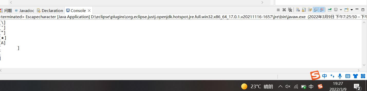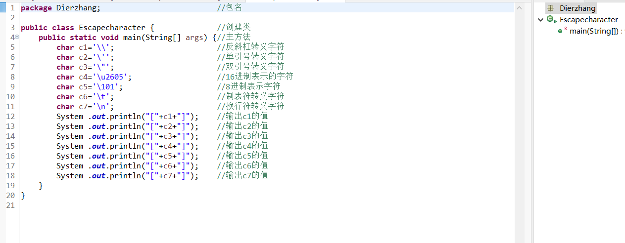 转义字符是一种特殊的字符变量,其以反斜杠“”开头,后跟一个或多个字符。转义字符具有特定的含义,不同于字符原有的意义,故称“转义”。Java中的转义字符如图所示: