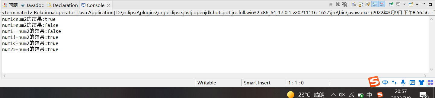 例2.12 使用关系运算符对变量进行比较运算。