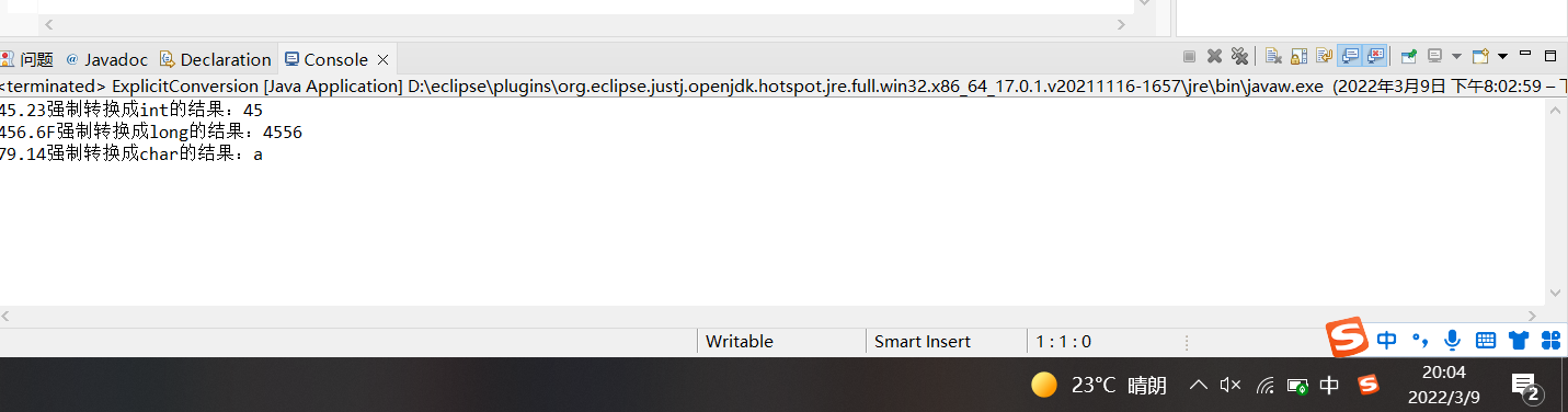 运行结果如图所示: 2.4.2 显示转换